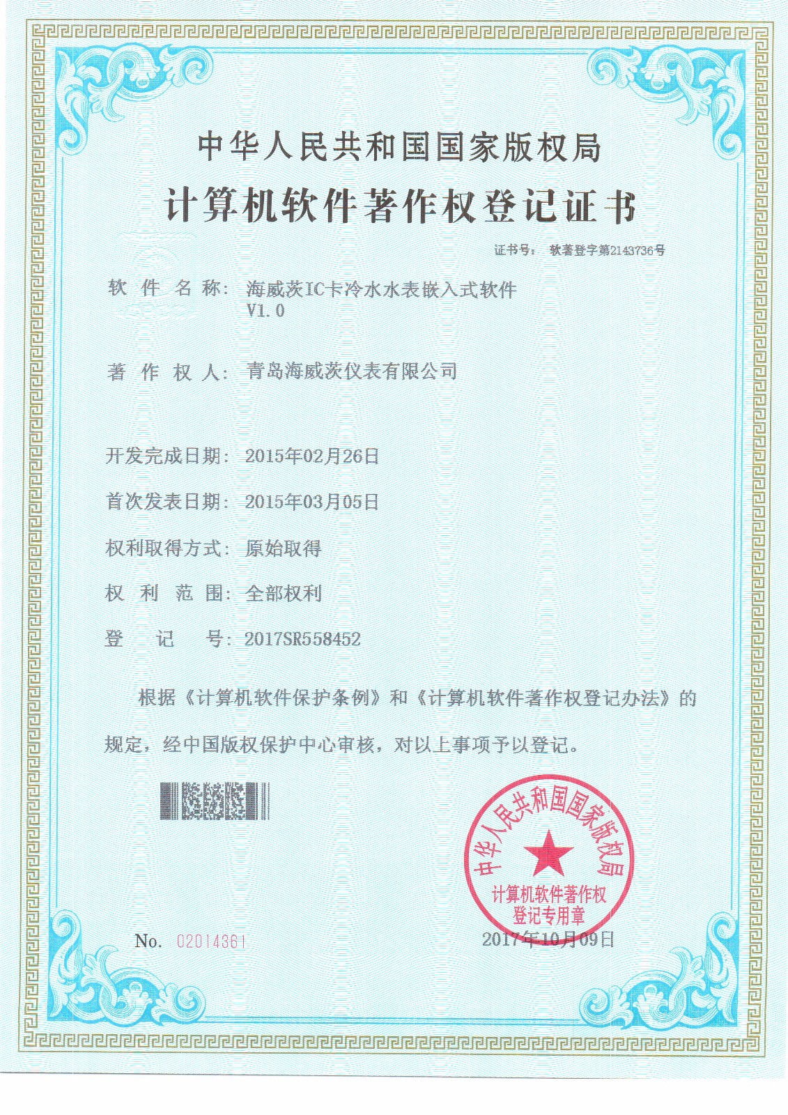 IC卡冷水水表嵌入式軟件V1_0